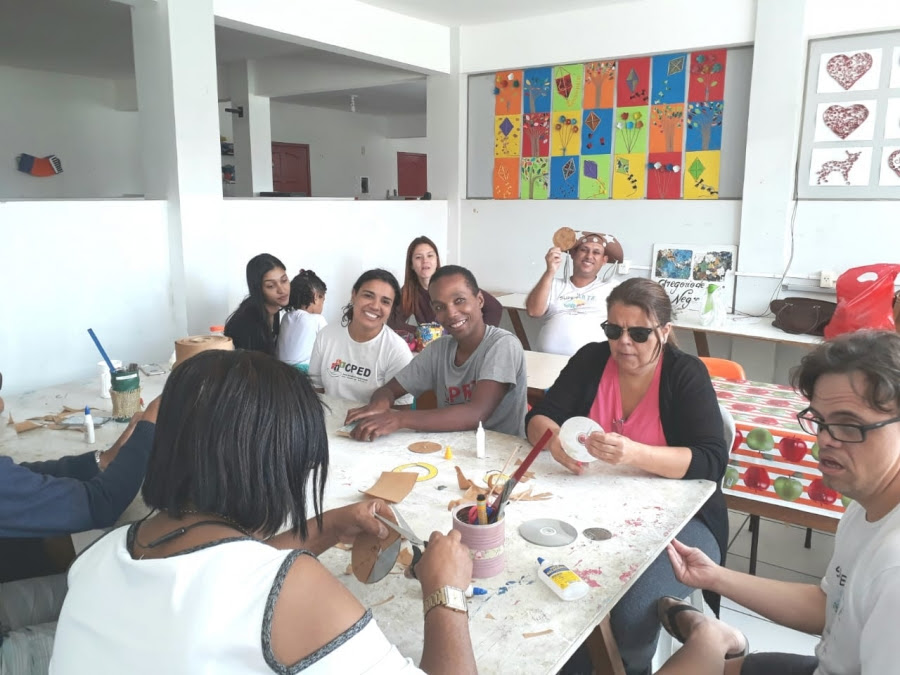 Em relação às atividades desenvolvidas para as famílias dos assistidos, o Centro Dia promove oficina de artesanato para as mães, que também participam de grupo de reflexão com acompanhamento, orientações e estímulos de equipe técnica formada por psicólogos e assistentes sociais.